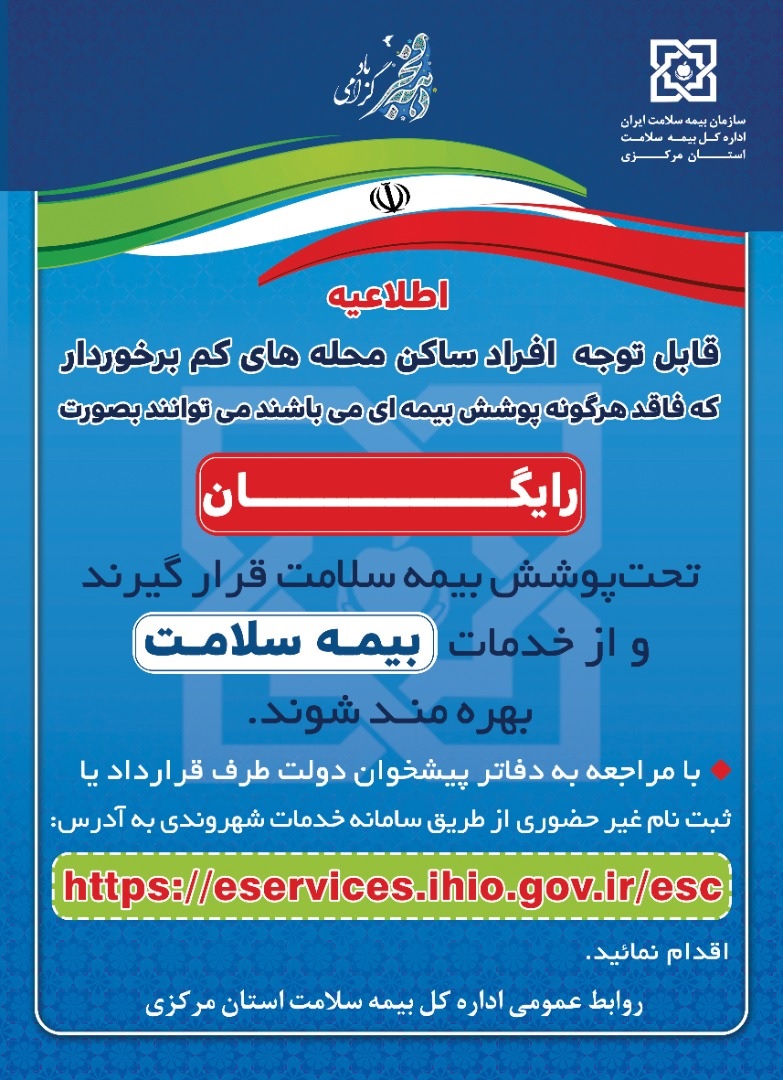طرح بیمه نمودن افراد فاقد پوشش بیمه ای در محله های کم برخوردار ۰۳ اسفند ۱۴۰۰ | ۱۲:۴۸ کد : ۲۴۱۷۷ اطلاعیه ارسال به دیگران نام شما ایمیل شما ایمیل دریافتکننده ارسال انصراف تعداد بازدید:۲۶۰۵۳