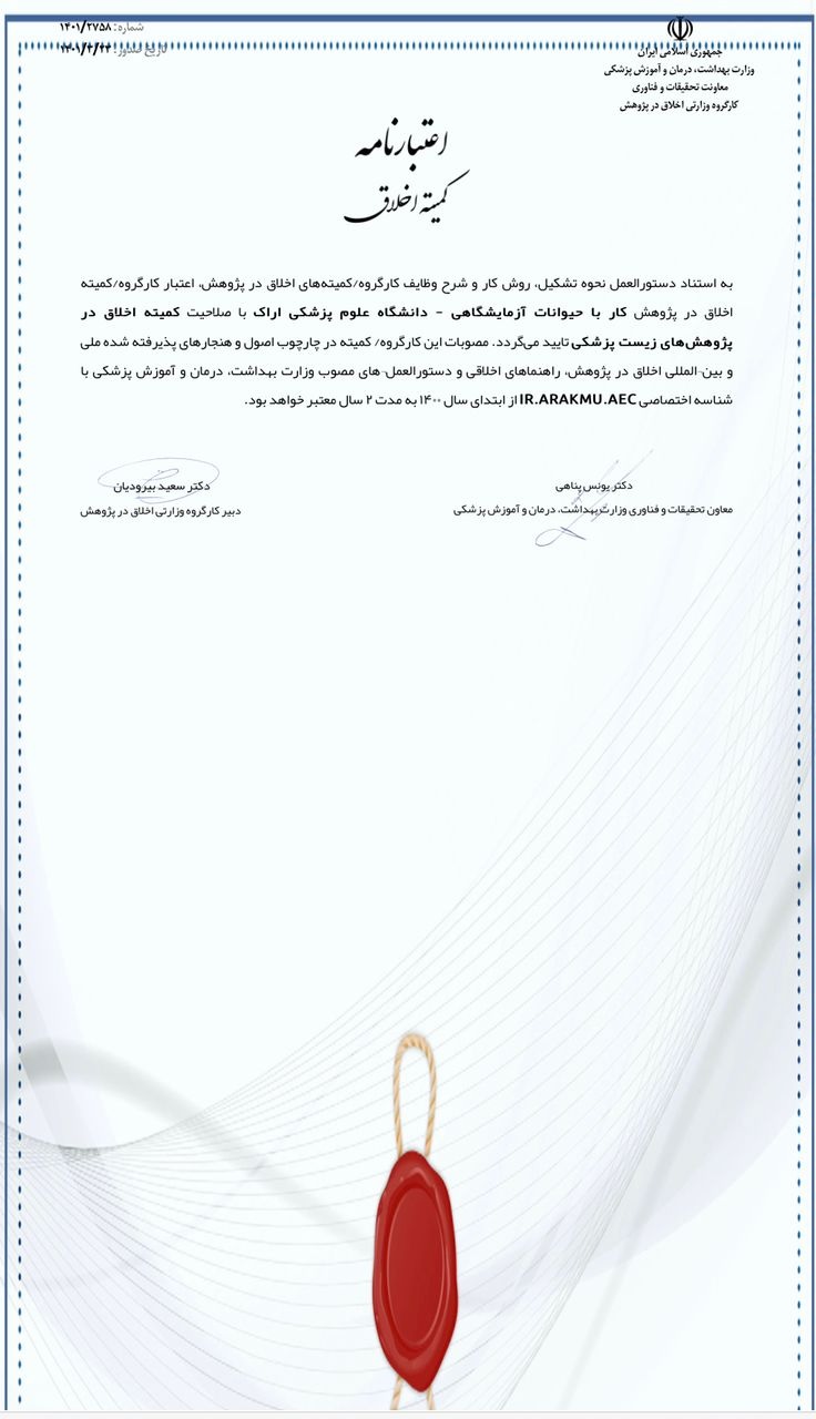 اخذ اعتبار نامه کمیته اخلاق در پژوهش کار با حیوانات آزمایشگاهی برای دانشگاه علوم پزشکی اراک ۰۱ تیر ۱۴۰۱ | ۰۷:۲۲ کد : ۲۷۲۴۶ اطلاعیه ارسال به دیگران نام شما ایمیل شما ایمیل دریافتکننده ارسال انصراف تعداد بازدید:۱۸۲۰۶