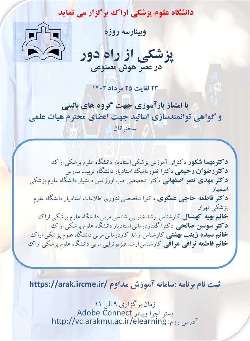 وبینار سه روزه کشوری با عنوان پزشکی از راه دور در عصر هوش مصنوعی