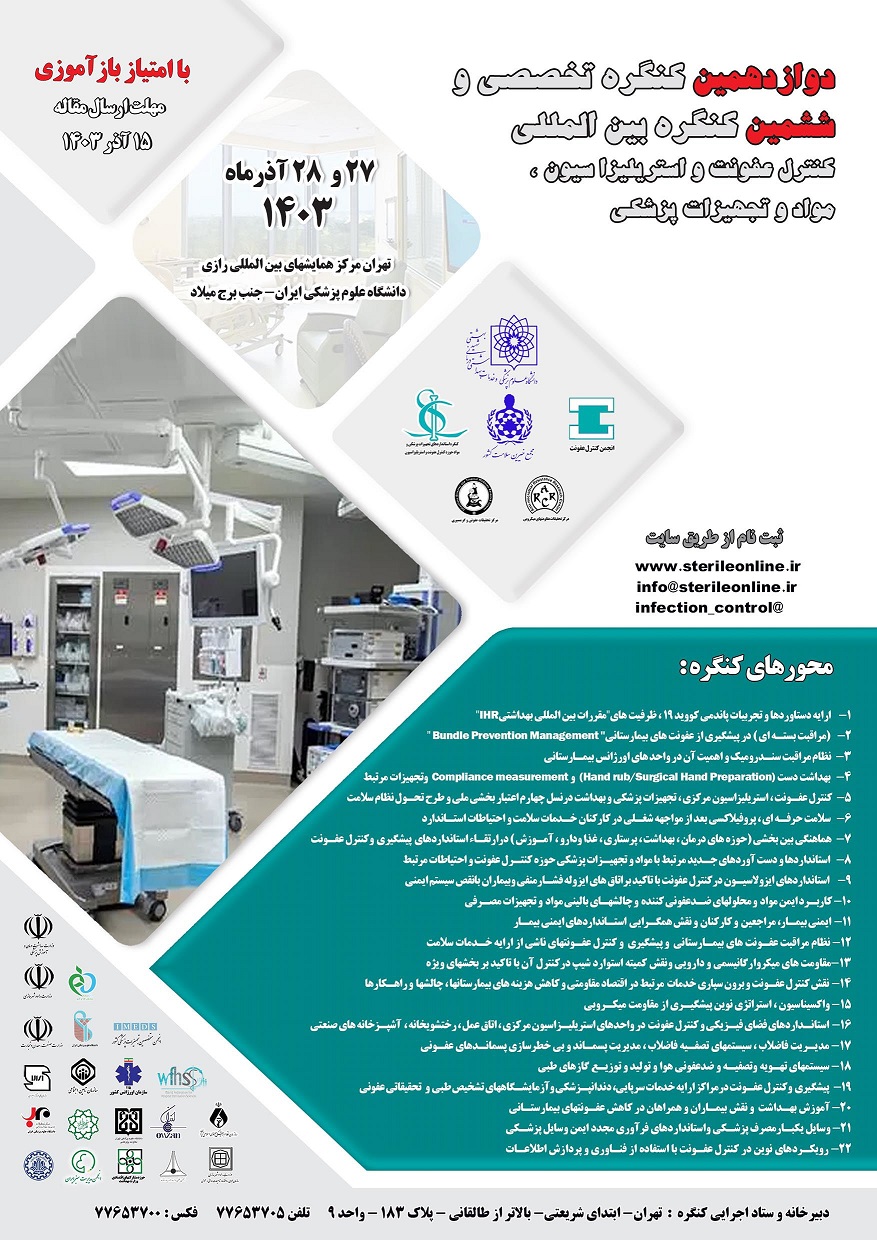 دوازدهمین کنگره تخصصی و ششمین کنگره بین المللی کنترل عفونت و استریلیزاسیون ، مواد و تجهیزات پزشکی در تاریخ ۲۷ الی ۲۸ آذرماه ۱۴۰۳
