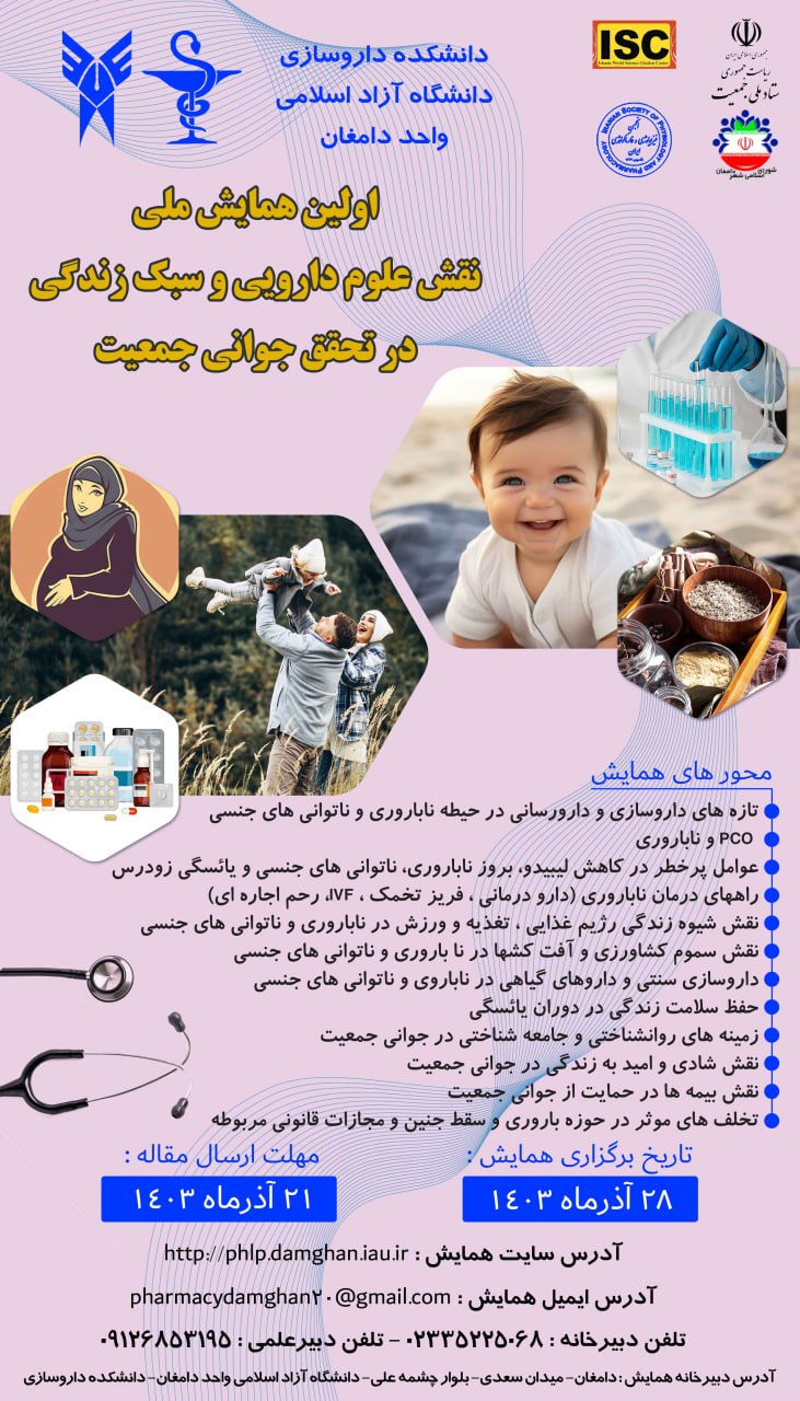 همایش ملی " نقش علوم دارویی و سبک زندگی در تحقق جوانی جمعیت "
