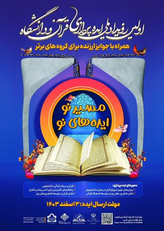 نهاد نمایندگی مقام معظم رهبری در دانشگاه‌ها با همکاری مرکز مطالعات راهبردی آموزش عالی، اولین دوره از رویداد ملی ایده‌پردازی «قرآن و دانشگاه» را با شعار «مسیر نو، ایده‌های نو» برگزار می‌نماید.