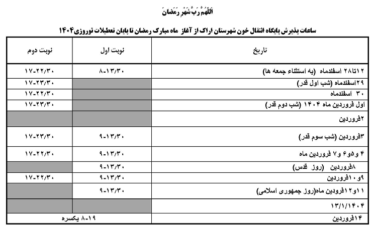 اعلام ساعات پذیرش اهدا کنندگان محترم در پایگاه انتقال خون شهرستان در ماه مبارک رمضان ۲۸ اسفند ۱۴۰۳ | ۱۳:۰۸ کد : ۵۰۲۶۹ اطلاعیه ارسال به دیگران نام شما ایمیل شما ایمیل دریافتکننده ارسال انصراف تعداد بازدید:۷۷۲۰ اعلام ساعات پذیرش اهدا کنندگان محترم در پایگاه انتقال خون شهرستان در ماه مبارک رمضان