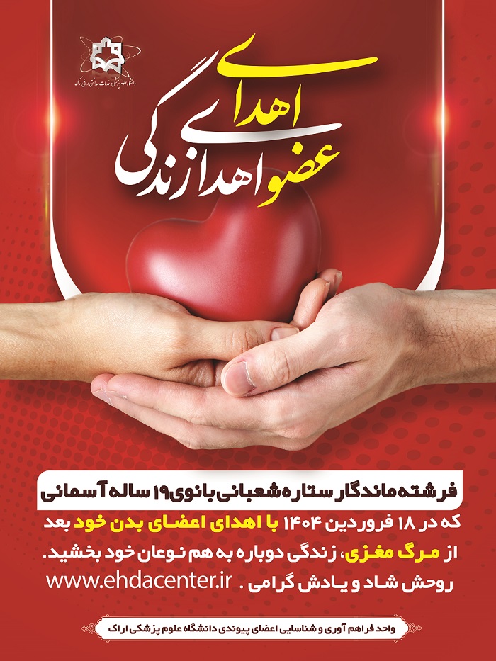 با ایثار خانواده زنده‌یاد ستاره شعبانی، نخستین اهدای عضو سال ۱۴۰۴ در استان مرکزی به ثبت رسید و قلب، کبد و کلیه‌های این بانوی ۱۹ ساله بروجردی، جان چند بیمار نیازمند به پیوند را نجات داد.