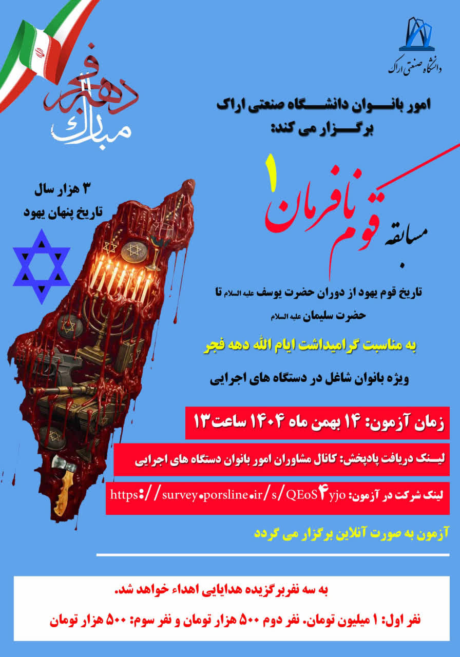مسابقه قوم نافرمان ۰۸ بهمن ۱۴۰۴ | ۱۰:۳۹ کد : ۵۷۷۴۳ اطلاعیه ارسال به دیگران نام شما ایمیل شما ایمیل دریافتکننده ارسال انصراف تعداد بازدید:۷۷ برگزاری مسابقه قوم نافرمان، در ایام الله دهه فجر