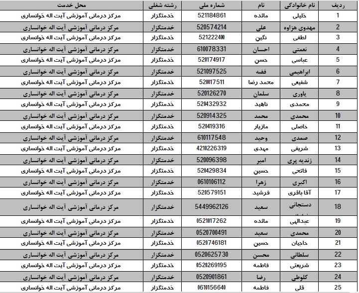 اعلام پذیرفته شدگان یک و نیم برابر ظرفیت رشته شغلی خدمتگزار بیمارستان آیت اله خوانساری (ره)